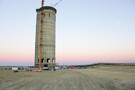 由于尿素造粒塔造粒工藝需求,其塔頂高度普遍 較高,部分塔頂除塵裝置排放口距地面超過100m,且由于塔形結構,其頂部平臺空間小,檢修不便、風 力載荷大。造粒工藝冷卻風量較大,其每1萬t的年產能,對應冷卻煙氣風量為1.5萬~ 2.0萬m3/h。一 座40萬t/a規模的尿素造粒塔高溫天氣下冷卻風量達 到80萬m3/h,較端高溫高濕情況下其冷卻風量還可能更高。