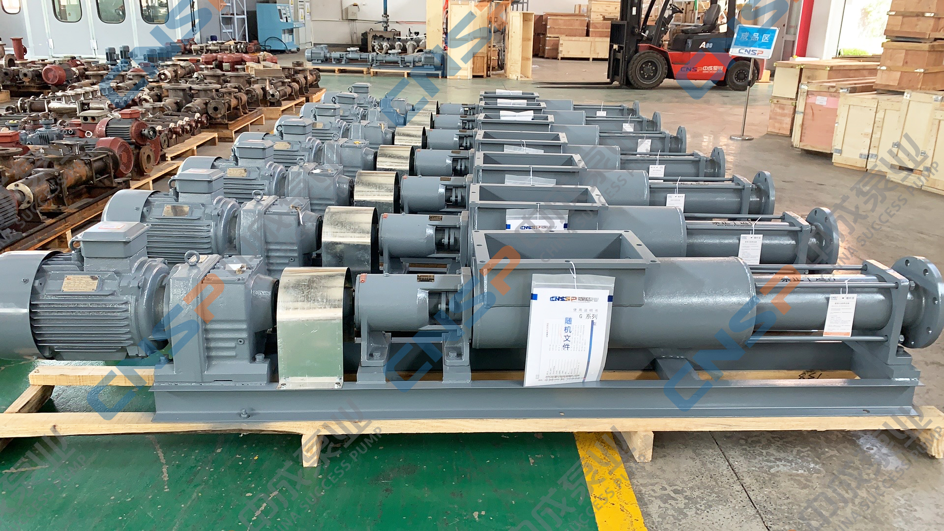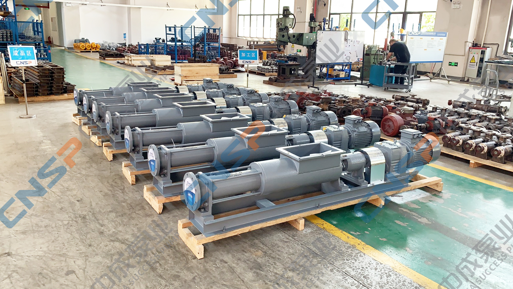浙江某工程單位近日在我廠采購一批單螺桿泵,型號為G85-1,帶料斗推進器耐磨材質,用于輸送污泥,分批發貨已交付客戶使用。