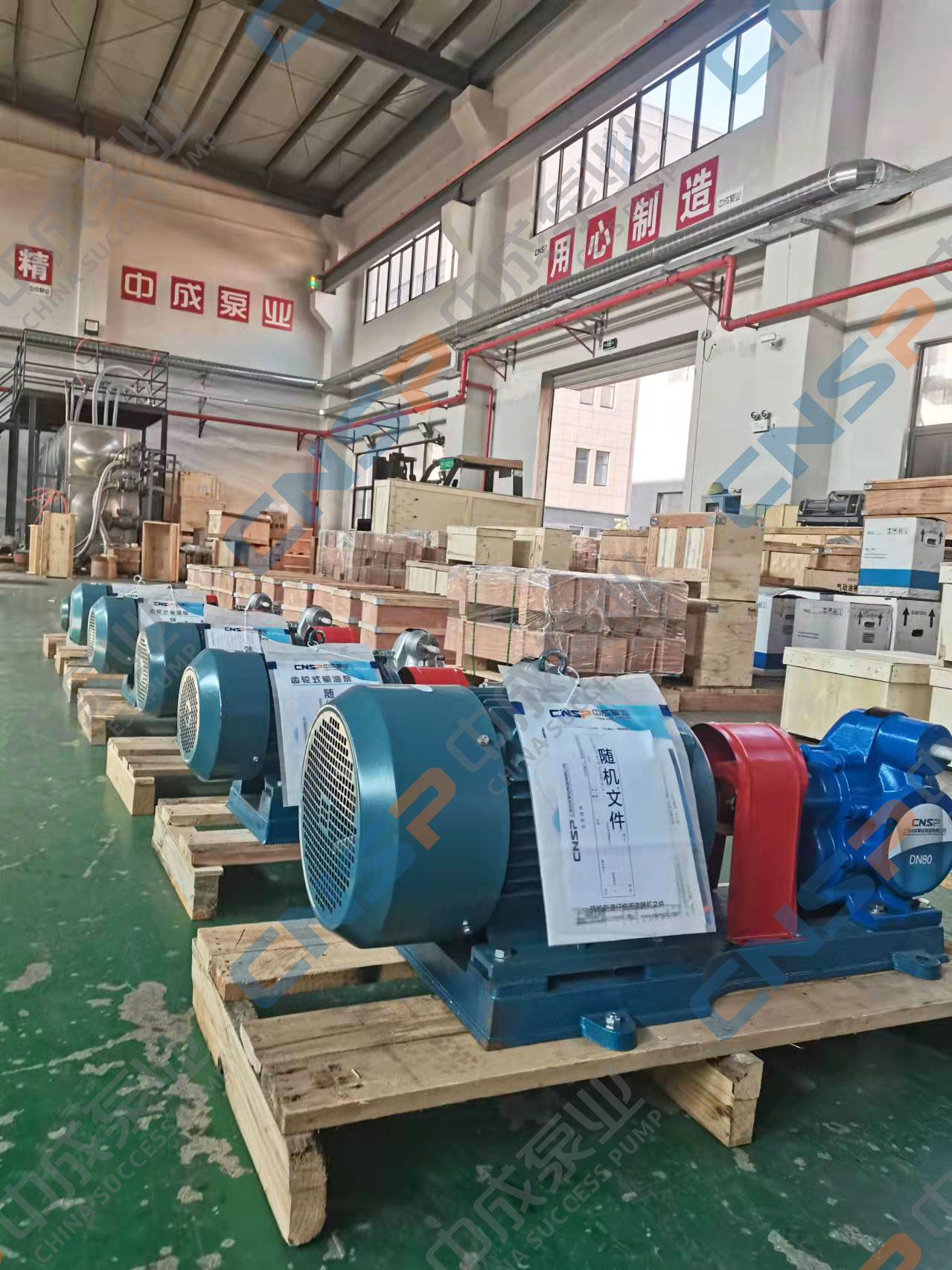 天津某環保設備科技有限公司在我廠采購一批齒輪油泵KCB系列,泵為340不銹鋼材質,用于輸送齒輪油,部分參數供參考:流量29m3/h ?功率7.5KW4 進口80mm 出口80mm 電壓380v,已生產檢驗完工待裝箱發貨。