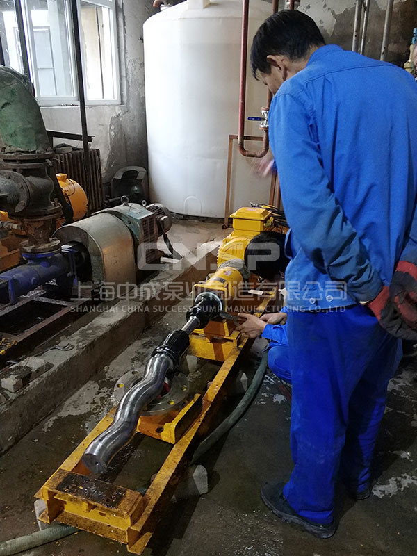 中成泵業(yè)技術(shù)工程師首先為客戶演示了螺桿泵的正確拆機(jī)順序,并進(jìn)行現(xiàn)場指導(dǎo),確保客戶能夠自主進(jìn)行操作和使用,同時還對現(xiàn)場的機(jī)器進(jìn)行調(diào)試。因為客戶購買的螺桿泵使用時間較長,導(dǎo)致易損件——定子磨損,在中成泵業(yè)技術(shù)工程師的建議下,更換定子之后機(jī)器成功啟動并正常運行。